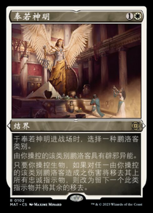 ![]() Variations : 4Parts— | DeificationAs this enchantment enters, choose a planeswalker type. Planeswalkers you control of the chosen type have hexproof. As long as you control a creature, if damage dealt to a planeswalker you control of the chosen type would result in all loyalty counters on it being removed, instead all but one of those counters are removed.