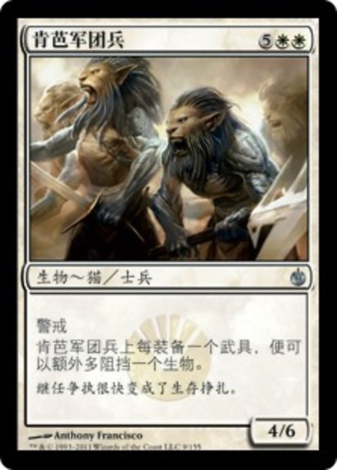 ![]() Variations— Parts— | Kemba's Legion4 / 6 Vigilance This creature can block an additional creature each combat for each Equipment attached to this creature.