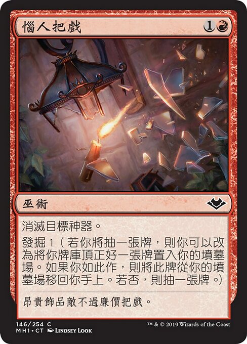 ![]() Variations— Parts— | ShenanigansDestroy target artifact. Dredge 1 (If you would draw a card, you may mill a card instead. If you do, return this card from your graveyard to your hand.)