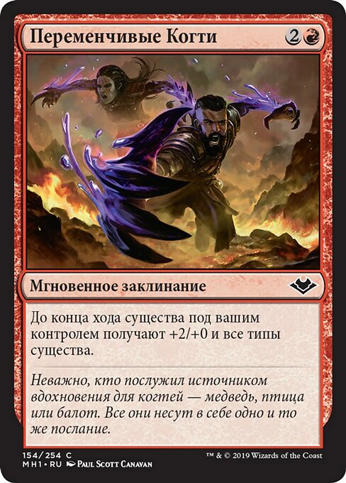 ![]() Variations— Parts— | Volatile ClawsUntil end of turn, creatures you control get +2/+0 and gain all creature types.