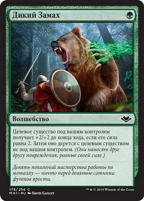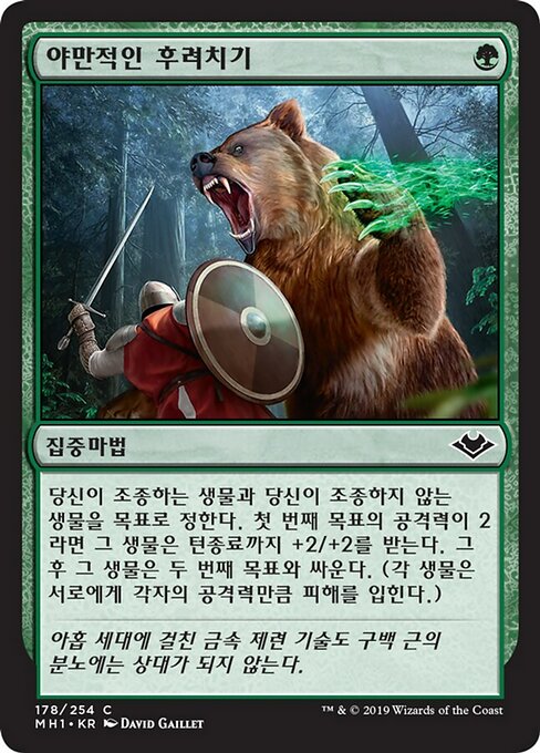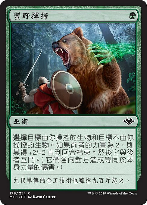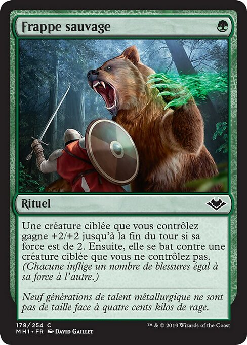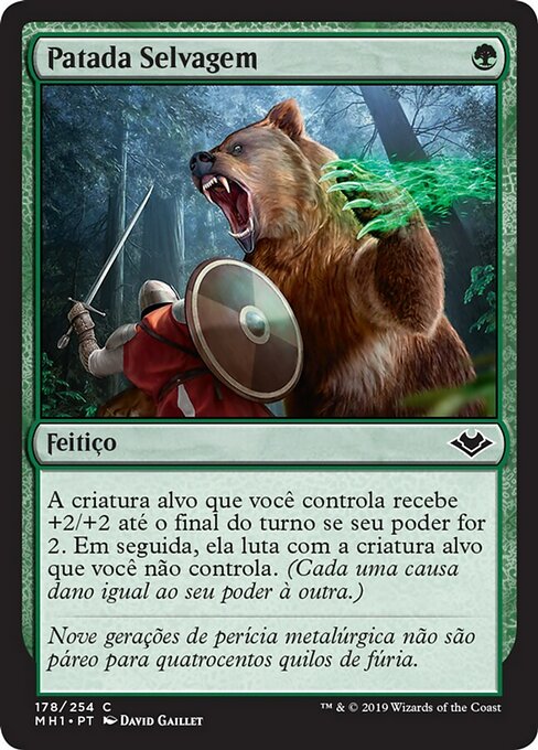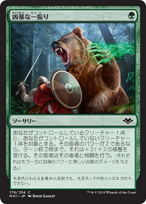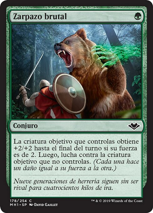 ![]() Variations— Parts— | Savage SwipeTarget creature you control gets +2/+2 until end of turn if its power is 2. Then it fights target creature you don't control. (Each deals damage equal to its power to the other.)