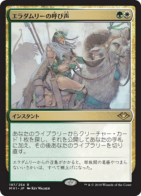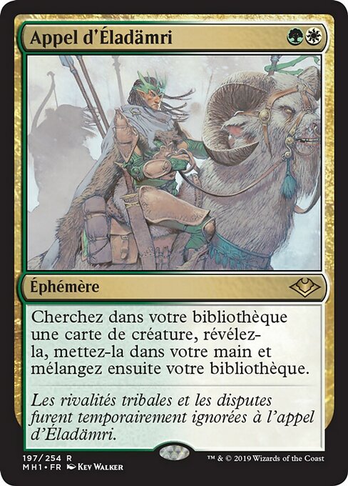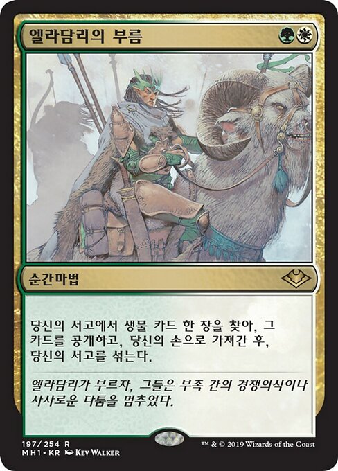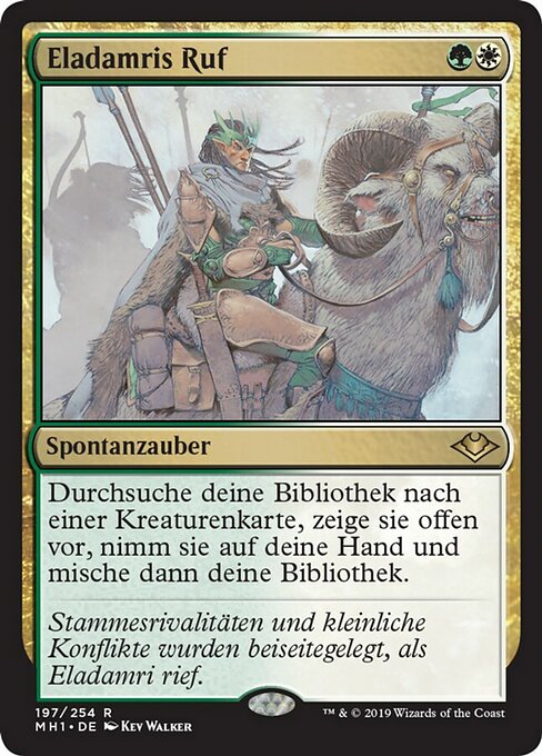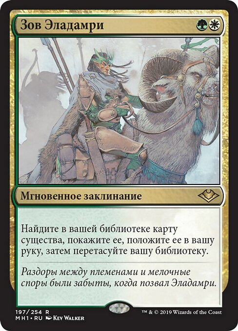 ![]() Variations— Parts— | Eladamri's CallSearch your library for a creature card, reveal that card, put it into your hand, then shuffle.