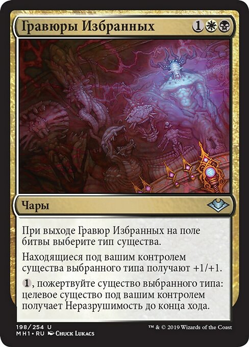 |  Variations— Parts— | Etchings of the ChosenAs this enchantment enters, choose a creature type. Creatures you control of the chosen type get +1/+1.