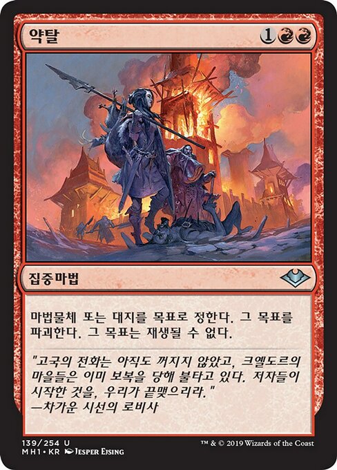 ![]() Variations— Parts— | SaccheggioDistruggi un artefatto o una terra bersaglio. Non possono essere rigenerati.