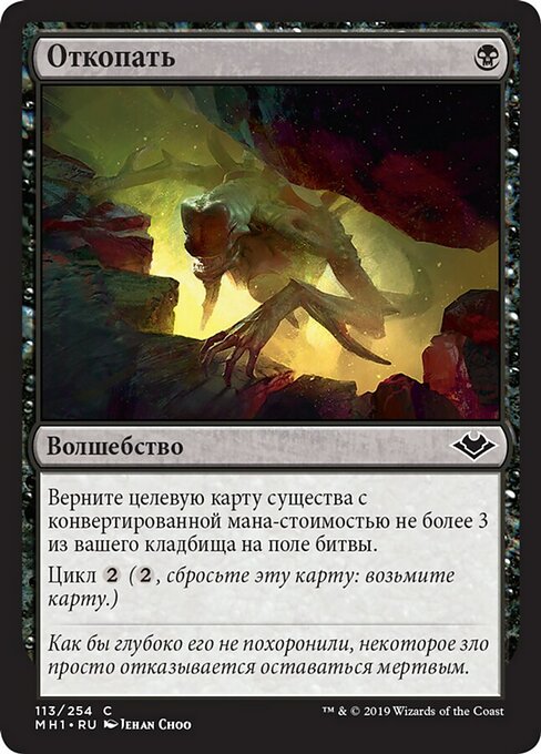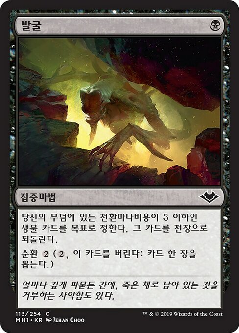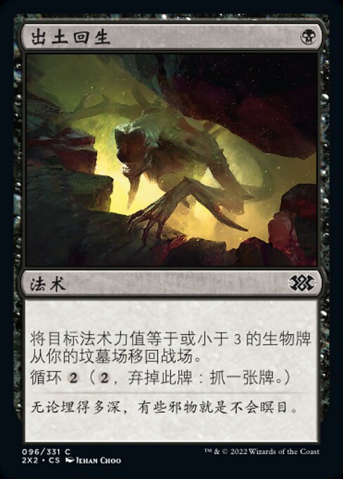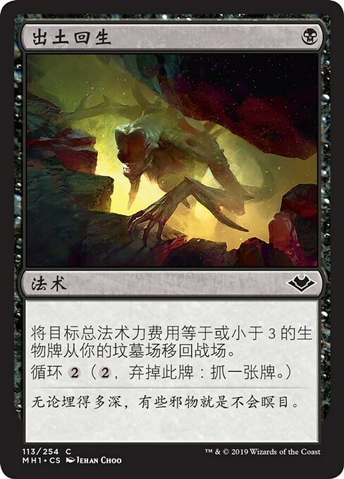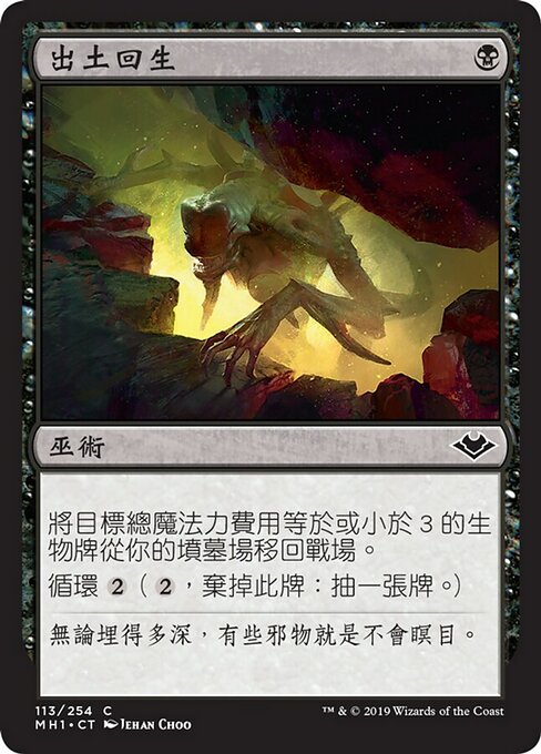 ![]() Variations— Parts— | 出土回生将目标总法术力费用等于或小于3的生物牌从你的坟墓场移回战场。 循环