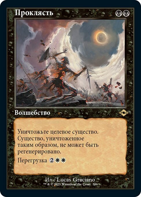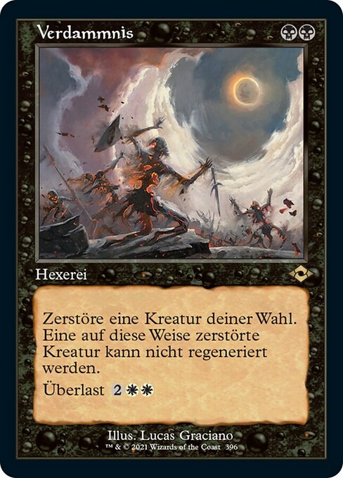|  Variations : 2Parts— | DamnDestroy target creature. A creature destroyed this way can't be regenerated. Overload