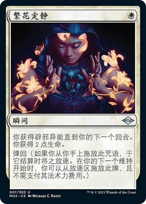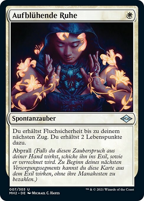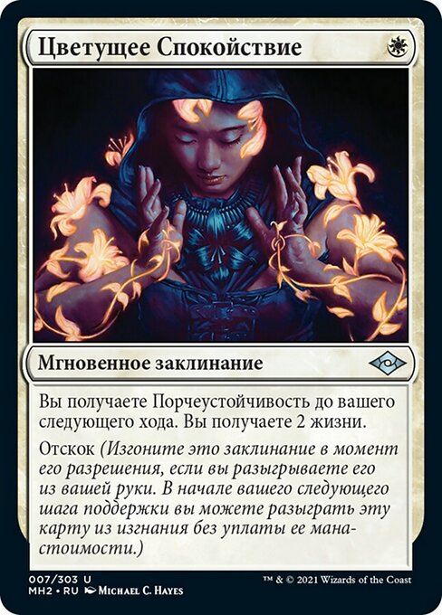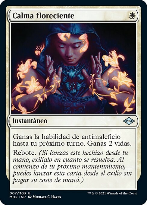 |  Variations : 1Parts— | Blossoming CalmYou gain hexproof until your next turn. You gain 2 life. Rebound (If you cast this spell from your hand, exile it as it resolves. At the beginning of your next upkeep, you may cast this card from exile without paying its mana cost.)