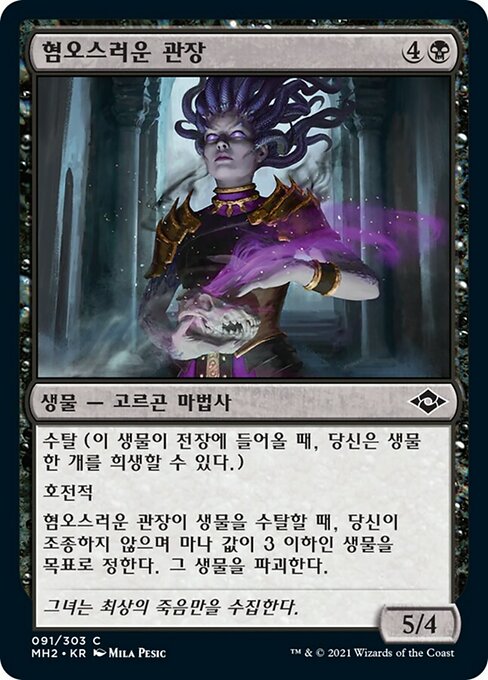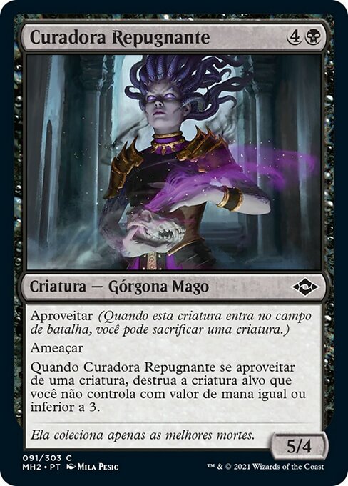 |  Variations— Parts— | Loathsome Curator5 / 4 Exploit (When this creature enters, you may sacrifice a creature.) Menace When this creature exploits a creature, destroy target creature you don't control with mana value 3 or less.