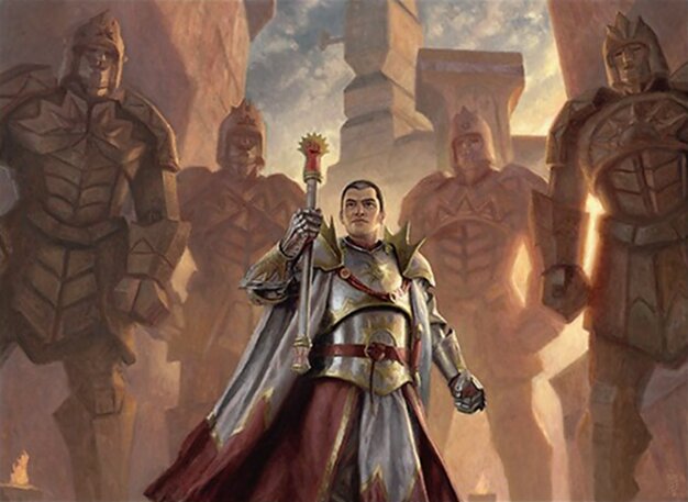 Siempre que lances un hechizo multicolor, crea una ficha de criatura artefacto Gólem roja y blanca 4/4.