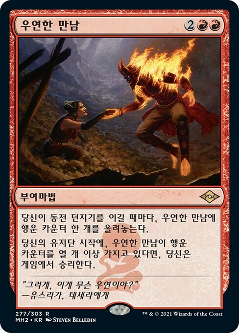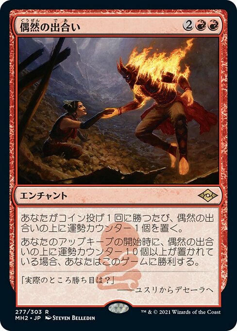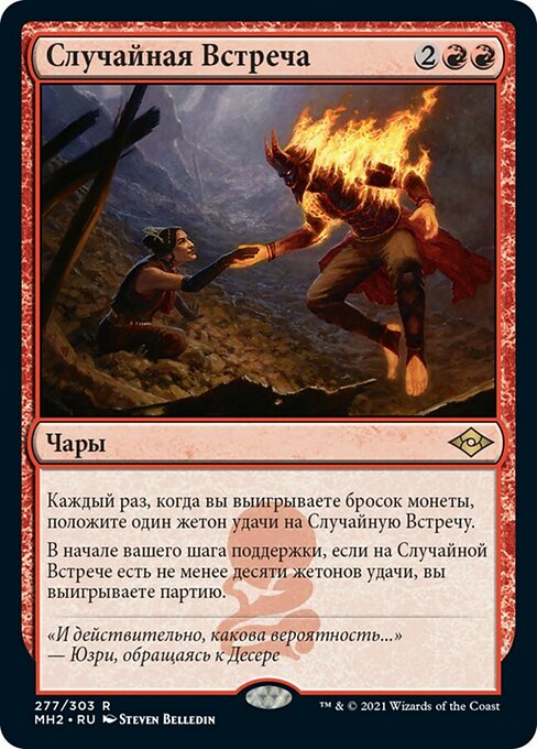 |  Variations— Parts— | Rencontre de hasardÀ chaque fois que vous gagnez un pile ou face, mettez un marqueur « chance » sur la Rencontre de hasard. Au début de votre entretien, si la Rencontre de hasard a au moins dix marqueurs « chance » sur elle, vous gagnez la partie.