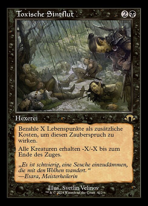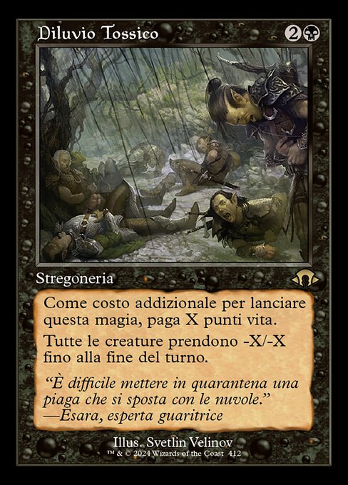 |  Variations : 1Parts— | Toxic DelugeAs an additional cost to cast this spell, pay X life. All creatures get -X/-X until end of turn.