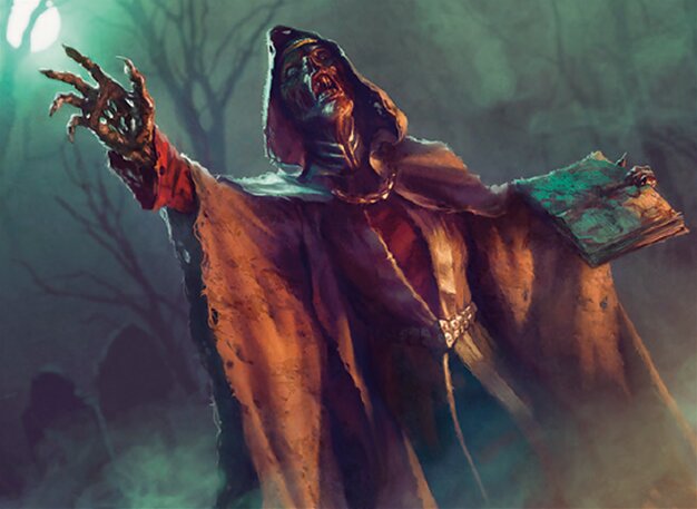 Quand le Servant sinistre arrive sur le champ de bataille, cherchez dans votre bibliothèque une carte avec une valeur de mana inférieure ou égale à votre dévotion au noir, révélez-la, mettez-la dans votre main, puis mélangez. Vous perdez 3 points de vie.