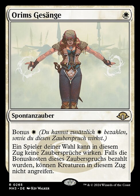 |  Variations : 1Parts— | Canto di OrimPotenziamento  Un giocatore bersaglio non può lanciare magie in questo turno. Se questa magia è stata potenziata, le creature non possono attaccare in questo turno.