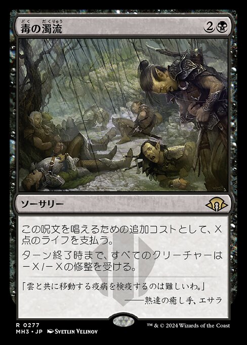|  Variations : 1Parts— | Dilúvio TóxicoComo custo adicional para conjurar esta mágica, pague X pontos de vida. Todas as criaturas recebem -X/-X até o final do turno.