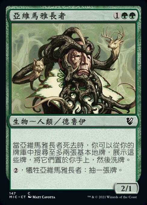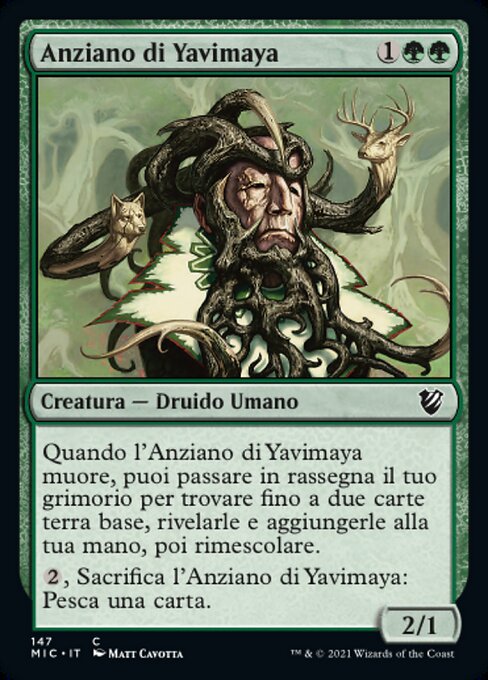 |  Variations— Parts— | Yavimaya Elder2 / 1 When this creature dies, you may search your library for up to two basic land cards, reveal them, put them into your hand, then shuffle.