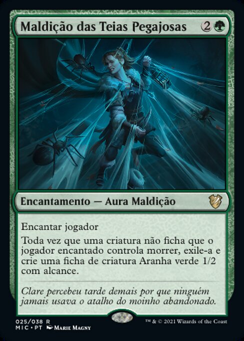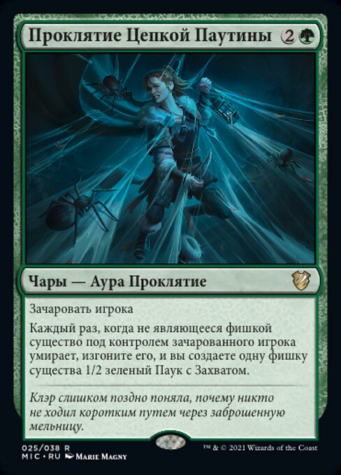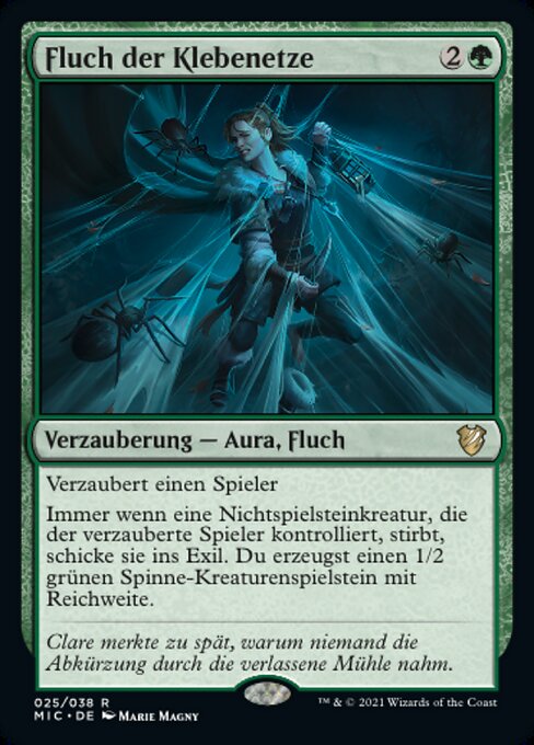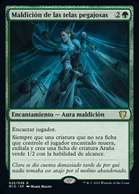 |  Variations : 1Parts : 2 | Curse of Clinging WebsEnchant player Whenever a nontoken creature enchanted player controls dies, exile it and you create a 1/2 green Spider creature token with reach.