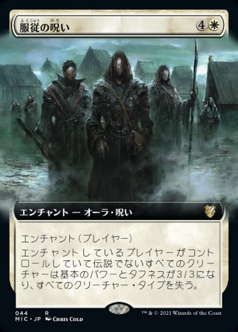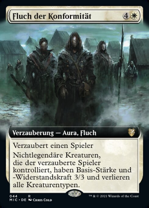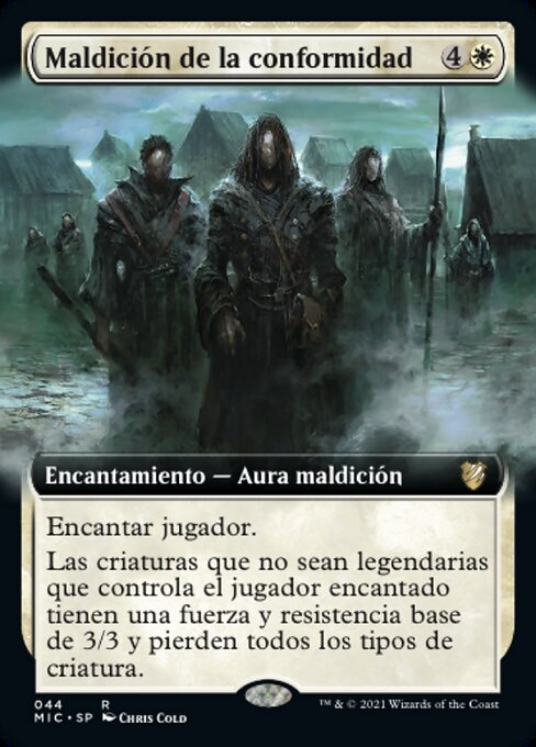 |  Variations : 1Parts— | Curse of ConformityEnchant player Nonlegendary creatures enchanted player controls have base power and toughness 3/3 and lose all creature types.