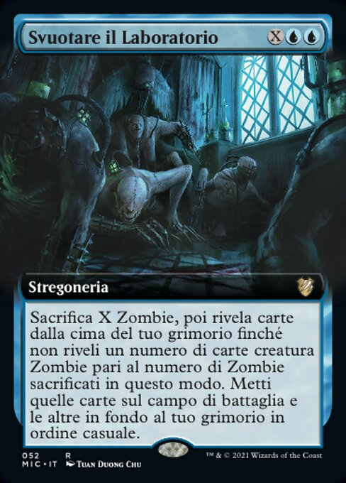 ![]() Variations : 1Parts— | Empty the LaboratorySacrifice X Zombies, then reveal cards from the top of your library until you reveal a number of Zombie creature cards equal to the number of Zombies sacrificed this way. Put those cards onto the battlefield and the rest on the bottom of your library in a random order.