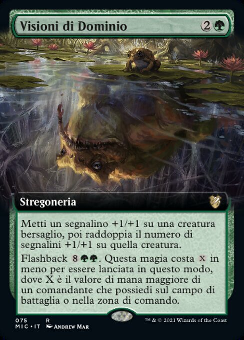 |  Variations : 1Parts— | Visions of DominancePut a +1/+1 counter on target creature, then double the number of +1/+1 counters on it. Flashback