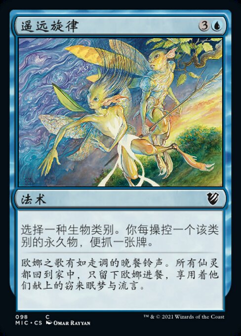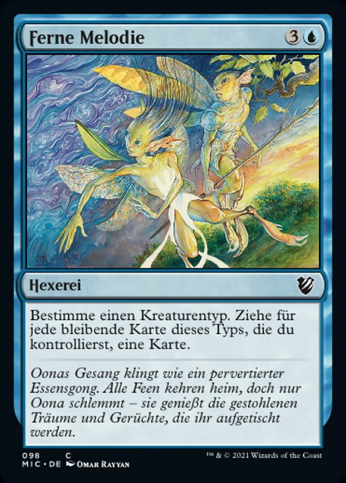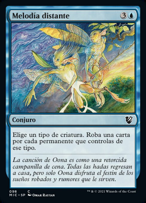 |  Variations— Parts— | 遠くの旋律クリーチャー・タイプ1つを選ぶ。あなたがコントロールしていてそのタイプを持つパーマネント1つにつき1枚のカードを引く。