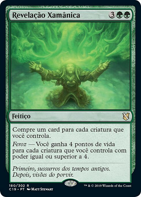 |  Variations— Parts— | Revelação XamânicaCompre um card para cada criatura que você controla. Feroz — Você ganha 4 pontos de vida para cada criatura que você controla com poder igual ou superior a 4.