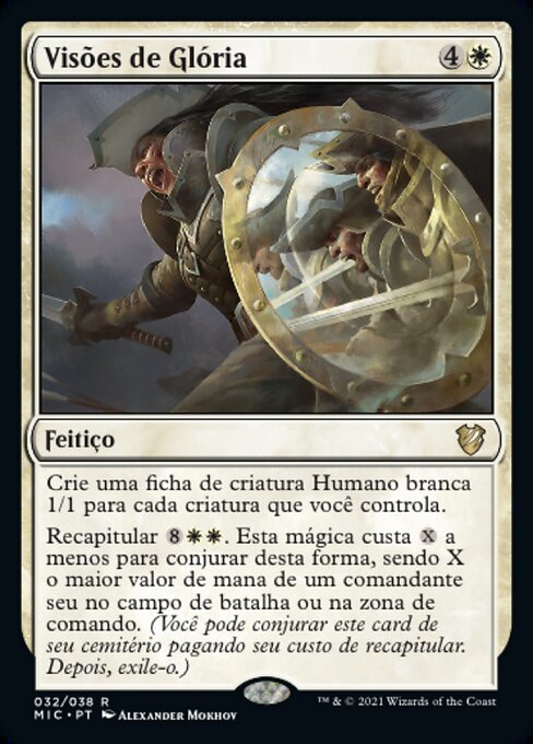 |  Variations— Parts— | Visões de GlóriaCrie uma ficha de criatura Humano branca 1/1 para cada criatura que você controla. Recapitular