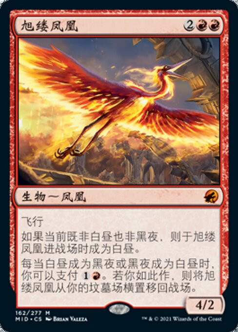 ![]() Variations : 1Parts : 2 | Sunstreak Phoenix4 / 2 Flying If it's neither day nor night, it becomes day as this creature enters. Whenever day becomes night or night becomes day, you may pay