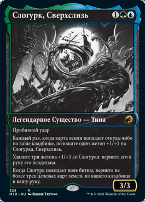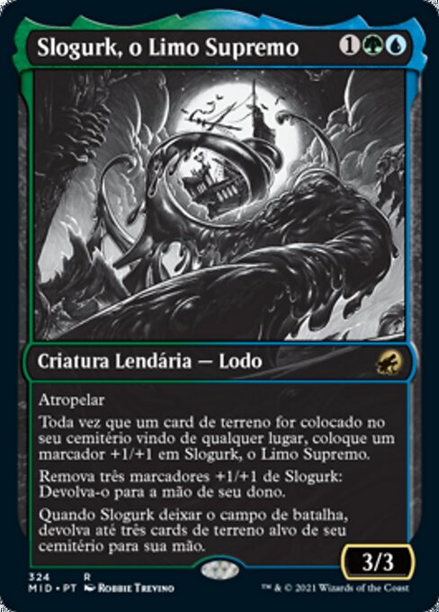 |  Variations : 1Parts— | Slogurk, the Overslime3 / 3 Trample Whenever a land card is put into your graveyard from anywhere, put a +1/+1 counter on Slogurk. Remove three +1/+1 counters from Slogurk : Return it to its owner's hand. When Slogurk leaves the battlefield, return up to three target land cards from your graveyard to your hand.