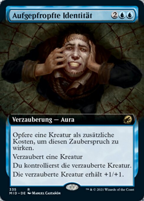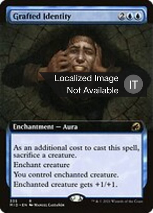 ![]() Variations : 2Parts— | Grafted IdentityAs an additional cost to cast this spell, sacrifice a creature. Enchant creature You control enchanted creature. Enchanted creature gets +1/+1.