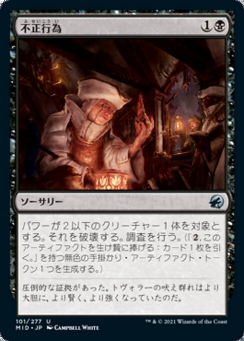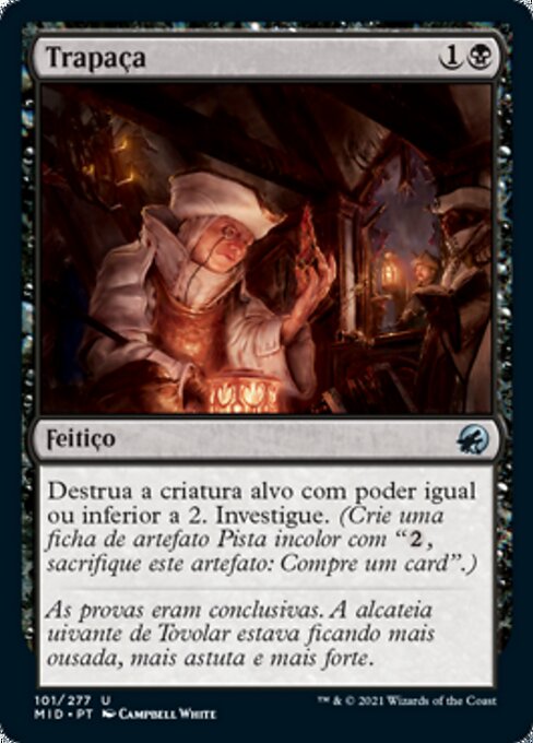 |  Variations— Parts— | Indizi di DelittoDistruggi una creatura bersaglio con forza pari o inferiore a 2. Indaga. (Crea una pedina artefatto Indizio incolore con "