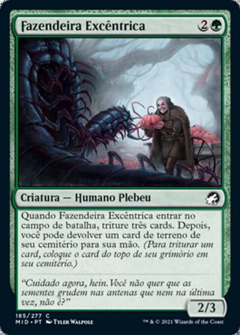 |  Variations— Parts— | 風変わりな農夫2 / 3 風変わりな農夫が戦場に出たとき、カード3枚を切削する。その後、あなたはあなたの墓地にある土地・カード1枚をあなたの手札に戻してもよい。(カードを切削するとは、あなたのライブラリーの一番上にあるカードをあなたの墓地に置くことである。)