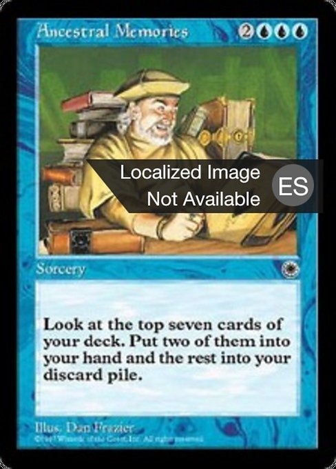 ![]() Variations— Parts— | Recuerdos ancestralesLook at the top seven cards of your library. Put two of them into your hand and the rest into your graveyard.