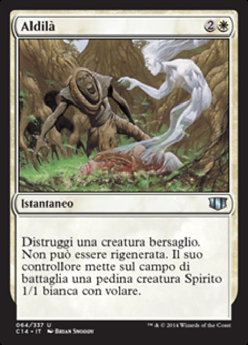 ![]() Variations— Parts— | AldilàDestroy target creature. It can't be regenerated. Its controller creates a 1/1 white Spirit creature token with flying.