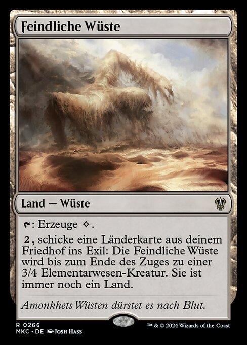 LegalitiesLegal Duel Penny Legacy Modern Pioneer Vintage Commander Oathbreaker Not Legal Brawl Predh Future Pauper Alchemy Historic Standard Timeless Gladiator Oldschool Premodern Standardbrawl Paupercommander RulingsDesert is a land subtype with no special meaning. It doesn't grant the land an intrinsic mana ability. Other cards may care about which lands are Deserts.