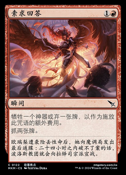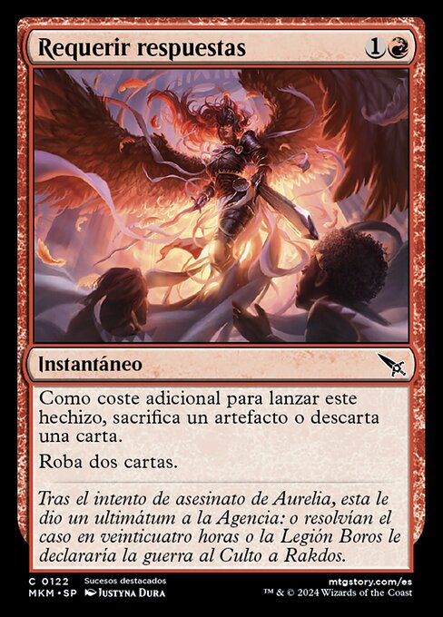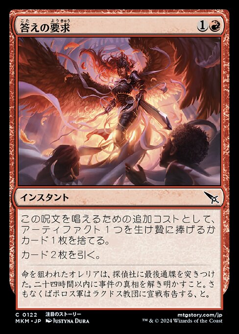 |  Variations : 1Parts— | Demand AnswersAs an additional cost to cast this spell, sacrifice an artifact or discard a card. Draw two cards.