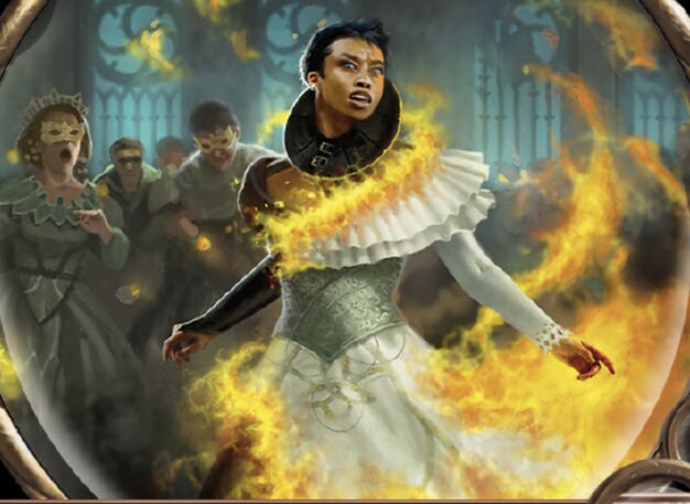 • Exilia cualquier cantidad de criaturas boca arriba que controlas con la habilidad de disfrazarse en un montón boca abajo, baraja ese montón y luego enmascáralas. (Para enmascarar una carta, ponla en el campo de batalla boca abajo como una criatura 2/2 con la habilidad de rebatir