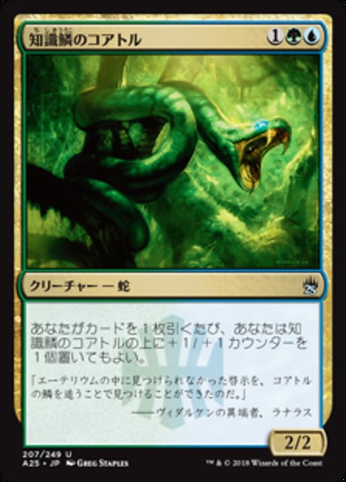 ![]() Variations— Parts— | 知識鱗のコアトル2 / 2 あなたがカードを1枚引くたび、あなたは知識鱗のコアトルの上に+1/+1カウンターを1個置いてもよい。