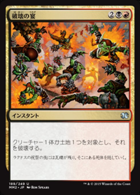 ![]() Variations— Parts— | 破壊の宴クリーチャー1体か土地1つを対象とし、それを破壊する。