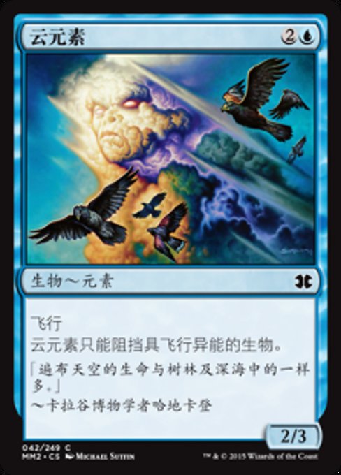 |  Variations— Parts— | 雲の精霊2 / 3 飛行 雲の精霊は飛行を持つクリーチャーのみをブロックできる。