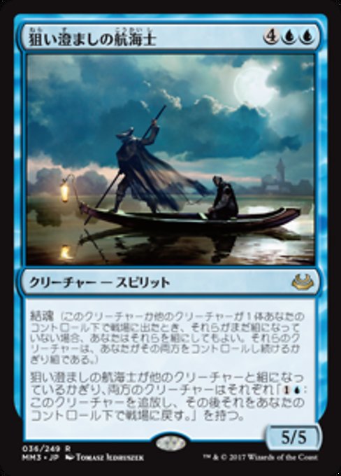 |  Variations— Parts— | 狙い澄ましの航海士5 / 5 結魂(このクリーチャーか他のクリーチャーが1体あなたのコントロール下で戦場に出たとき、それらがまだ組になっていない場合、あなたはそれらを組にしてもよい。それらのクリーチャーは、あなたがその両方をコントロールし続けるかぎり組である。) 狙い澄ましの航海士が他のクリーチャーと組になっているかぎり、両方のクリーチャーはそれぞれ「