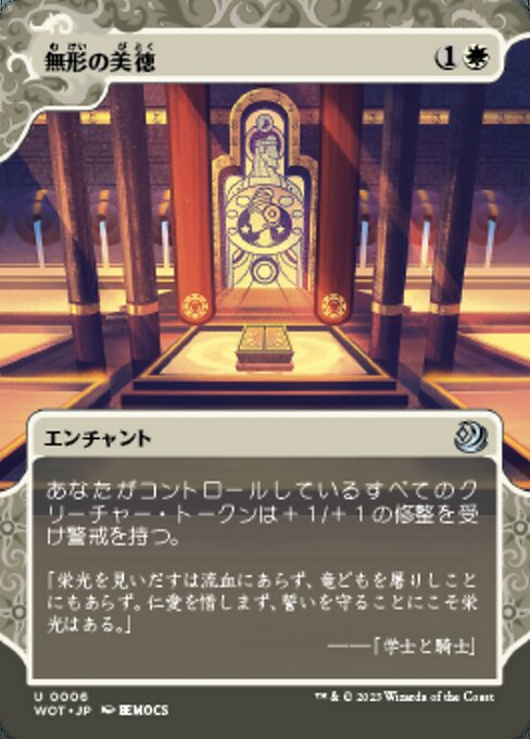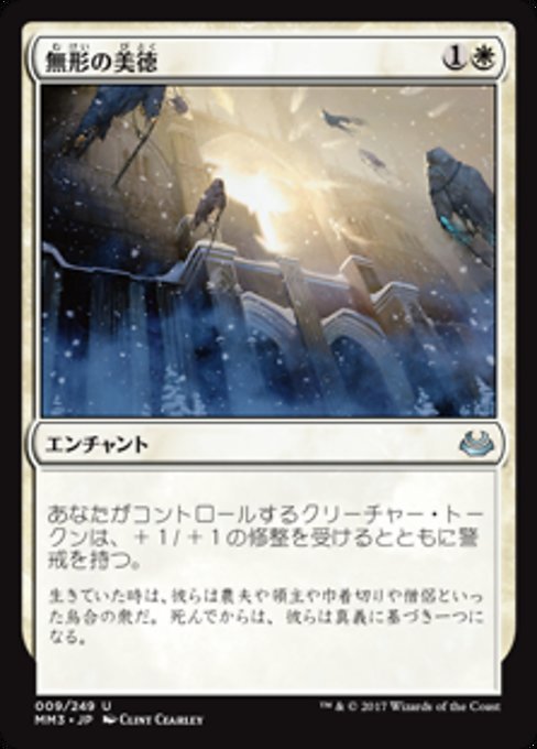 |  Variations— Parts— | 無形の美徳あなたがコントロールするクリーチャー・トークンは、+1/+1の修整を受けるとともに警戒を持つ。