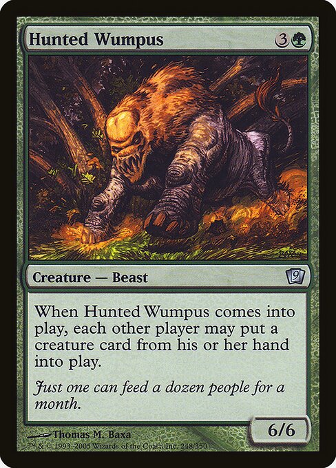 ![]() Variations— Parts— | Hunted Wumpus6 / 6 When this creature enters, each other player may put a creature card from their hand onto the battlefield.