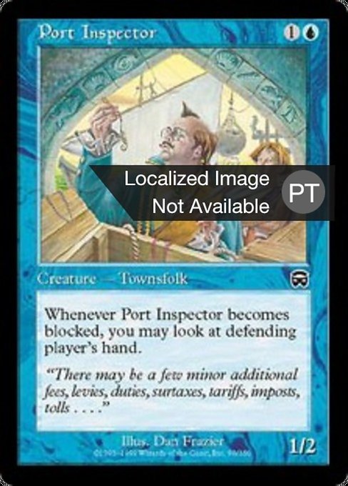 ![]() Variations— Parts— | Port Inspector1 / 2 Whenever this creature becomes blocked, you may look at defending player's hand.