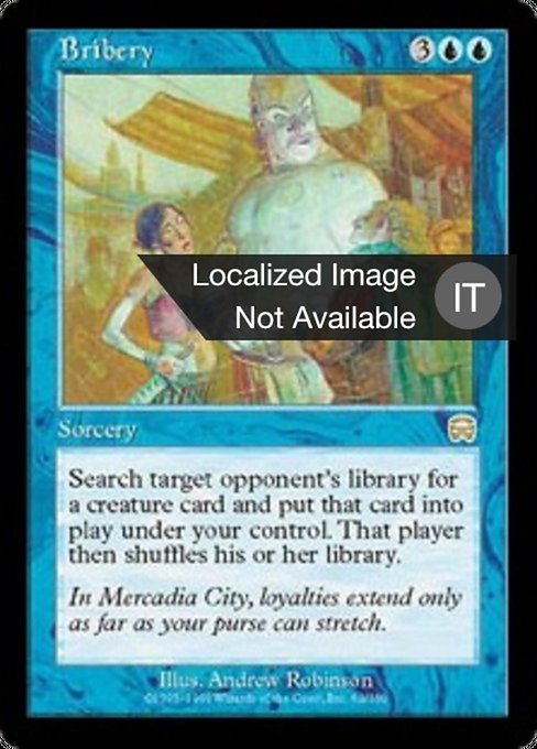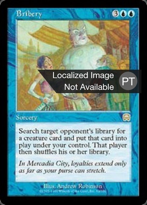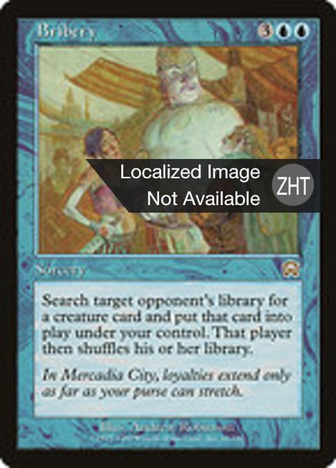 |  Variations— Parts— | 袖の下Search target opponent's library for a creature card and put that card onto the battlefield under your control. Then that player shuffles.