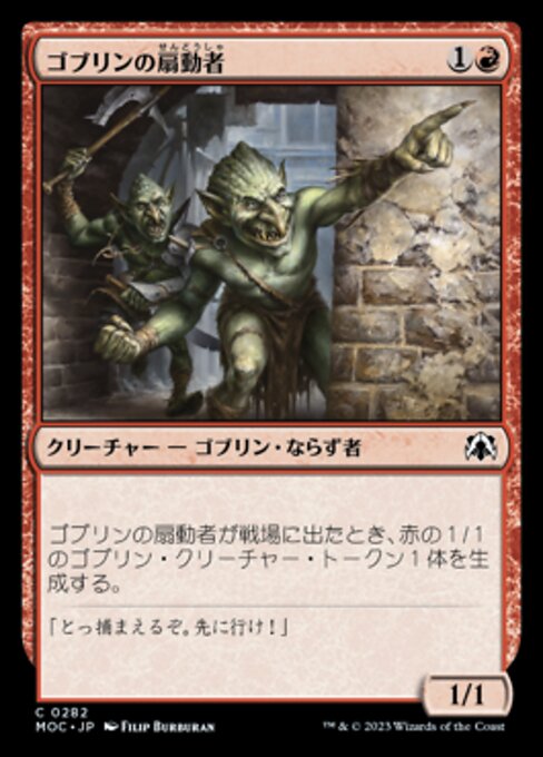 ![]() Variations— Parts— | Instigateur gobelin1 / 1 Quand l'Instigateur gobelin arrive sur le champ de bataille, créez un jeton de créature 1/1 rouge Gobelin.