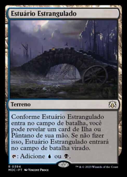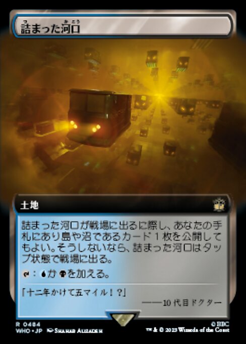 |  Variations— Parts— | 詰まった河口詰まった河口が戦場に出るに際し、あなたはあなたの手札にあり島や沼であるカード1枚を公開してもよい。そうしないなら、詰まった河口はタップ状態で戦場に出る。