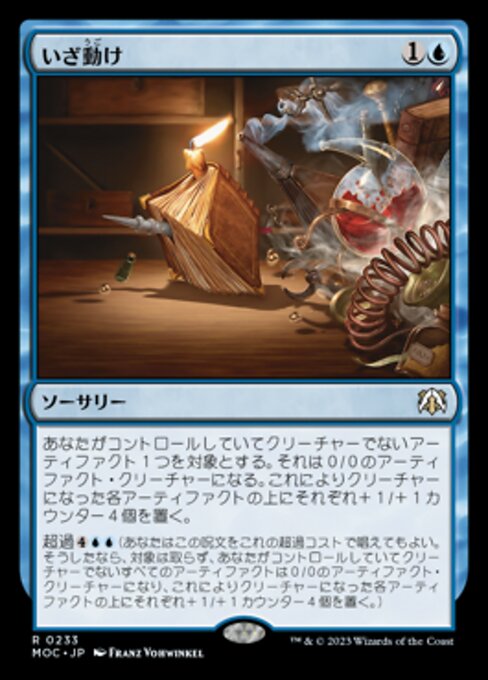 |  Variations— Parts— | Acordar para a VidaO artefato alvo não criatura que você controla se torna uma criatura artefato 0/0. Coloque quatro marcadores +1/+1 em cada artefato que se torna uma criatura dessa forma. Sobrecarga