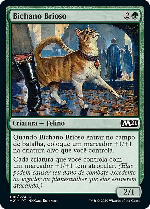 ![]() Variations— Parts— | Bichano Brioso2 / 1 Quando Bichano Brioso entrar no campo de batalha, coloque um marcador +1/+1 na criatura alvo que você controla. Cada criatura que você controla com um marcador +1/+1 tem atropelar.