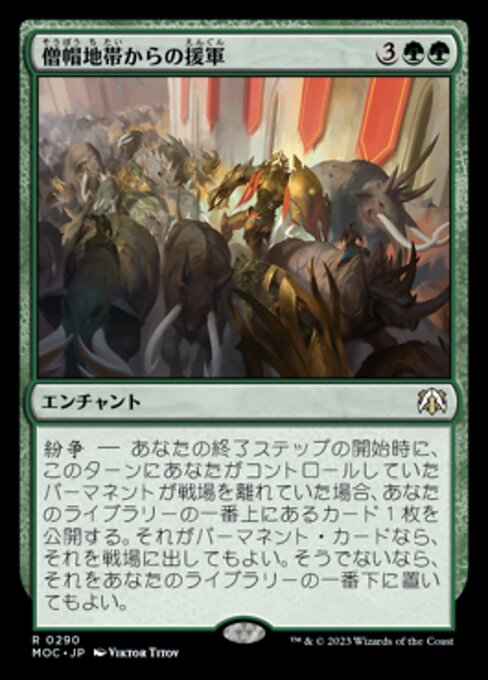|  Variations— Parts— | 外沿区相助反抗~在你的结束步骤开始时,若本回合中有由你操控的永久物离开战场,则展示你的牌库顶牌。如果它是永久物牌,你可以将它放进战场。若否,则你可以将其置于你的牌库底。