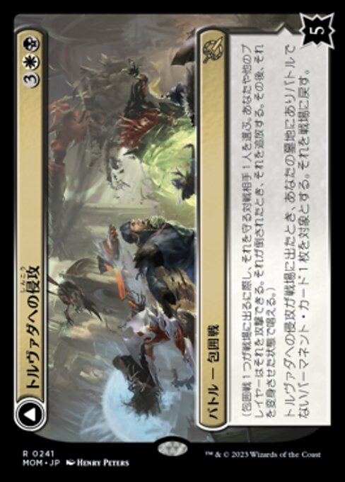 トルヴァダへの侵攻が戦場に出たとき、あなたの墓地にありバトルでないパーマネント・カード1枚を対象とする。それを戦場に戻す。
